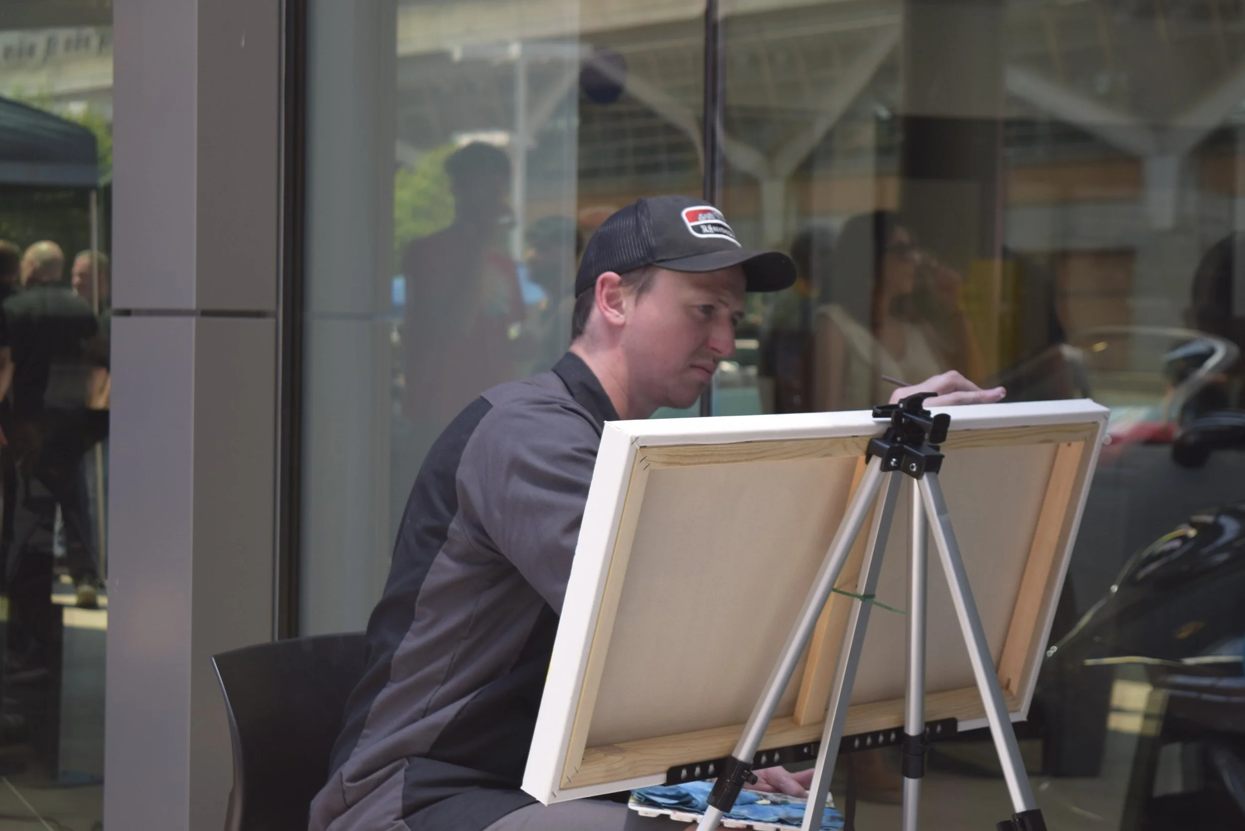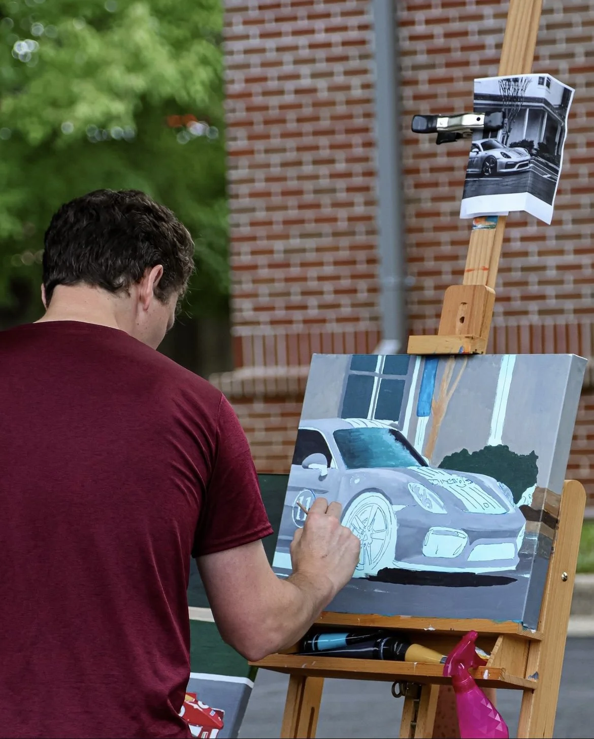 A display of my art, the reveal of the blue 993 turbo painting and I painted live as well.